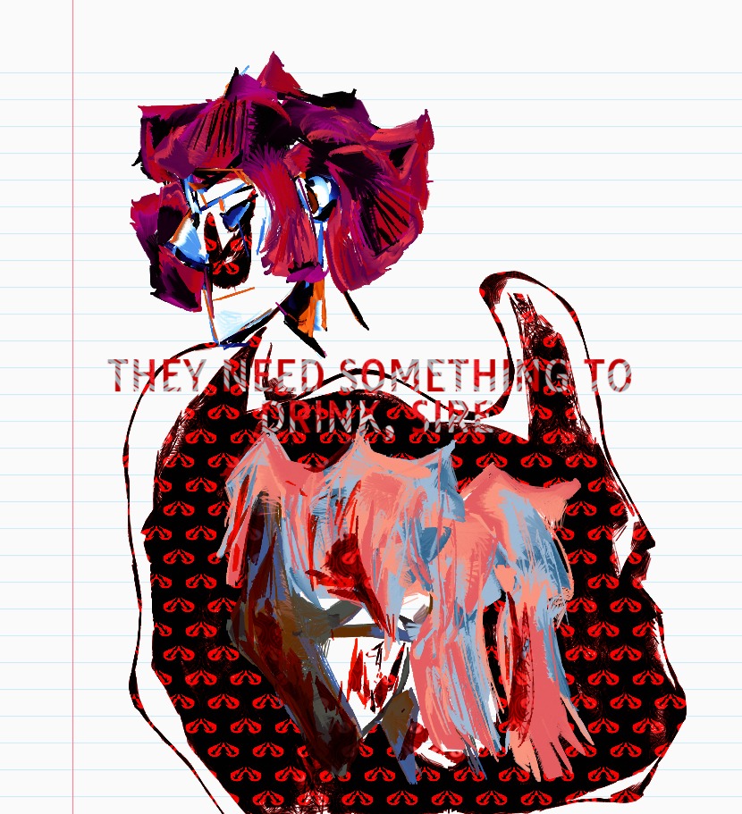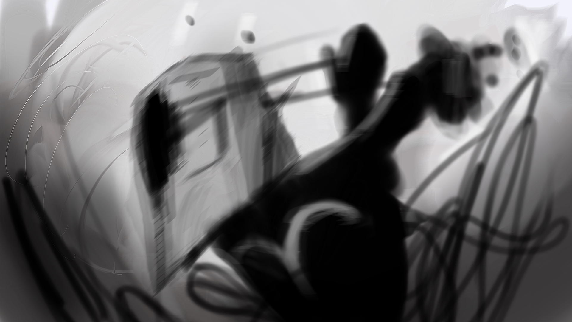 art i made from freestyling shapes. im still pretty proud of this. title is "may the best one win". this creatures in an arena fighting to win. if he loses, he dies
