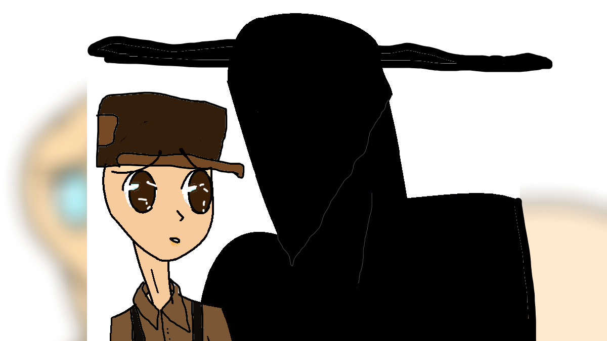 shitpost drawing of my ocs barney (left) and tenebris (right). i have no comment about it